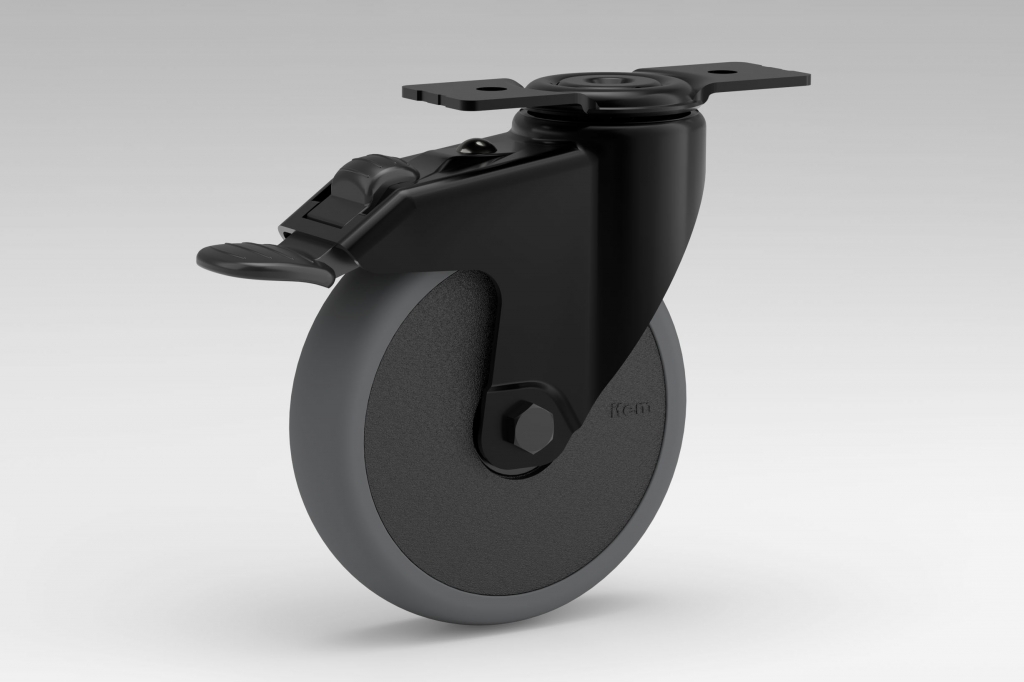 带有连接板的转向脚轮与带有固定孔的转向脚轮具有相同的高度。因此,它能够与具有相同脚轮尺寸的定向脚轮组合使用。