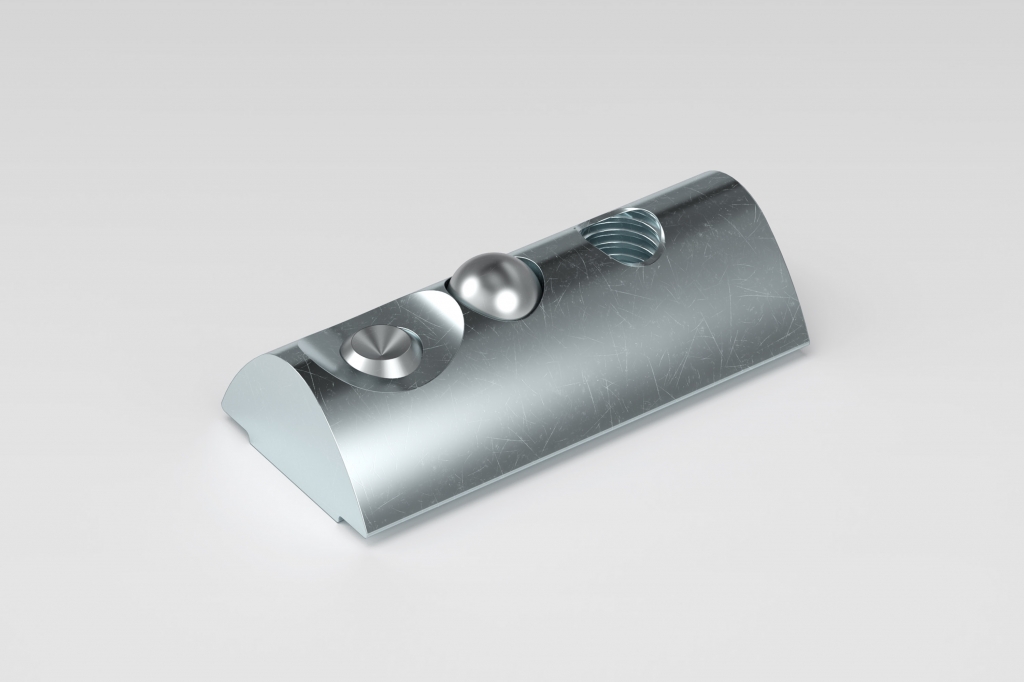 T 型槽螺母 F 8 系列 St M5 是 item 提供的一款通用型紧固元件,有一个 M5 螺纹。为了使组装更方便,所有的 T 型槽螺母 F 系列都内置一个整合式无头螺钉,可将螺母固定在 8 系列槽轨中,防止意外松动。它还能实现 T 型槽螺母与型材之间的静电安全连接。